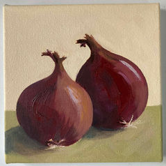 2 Onions, Oil on Board, Framed. SOLD